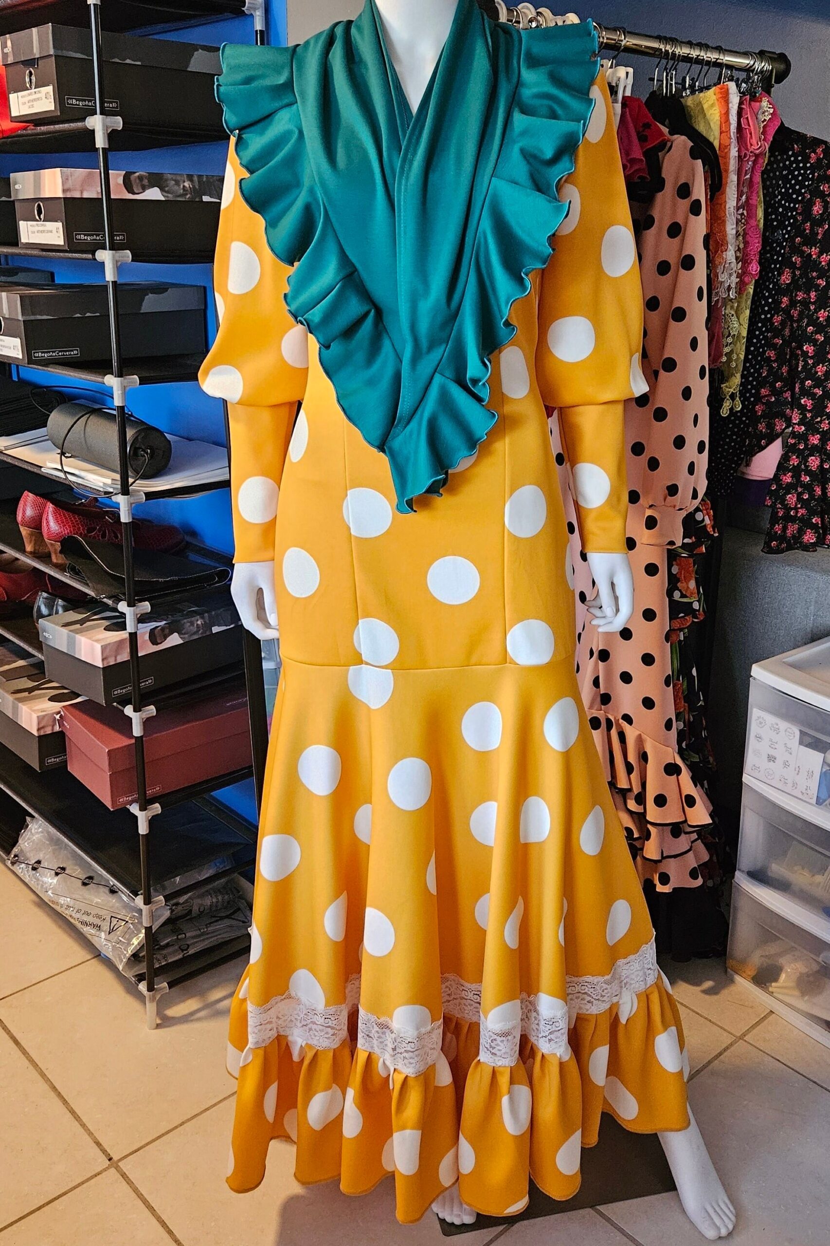 Flamenco Dress vestido de flamenco Yellow and White polka dots canastero