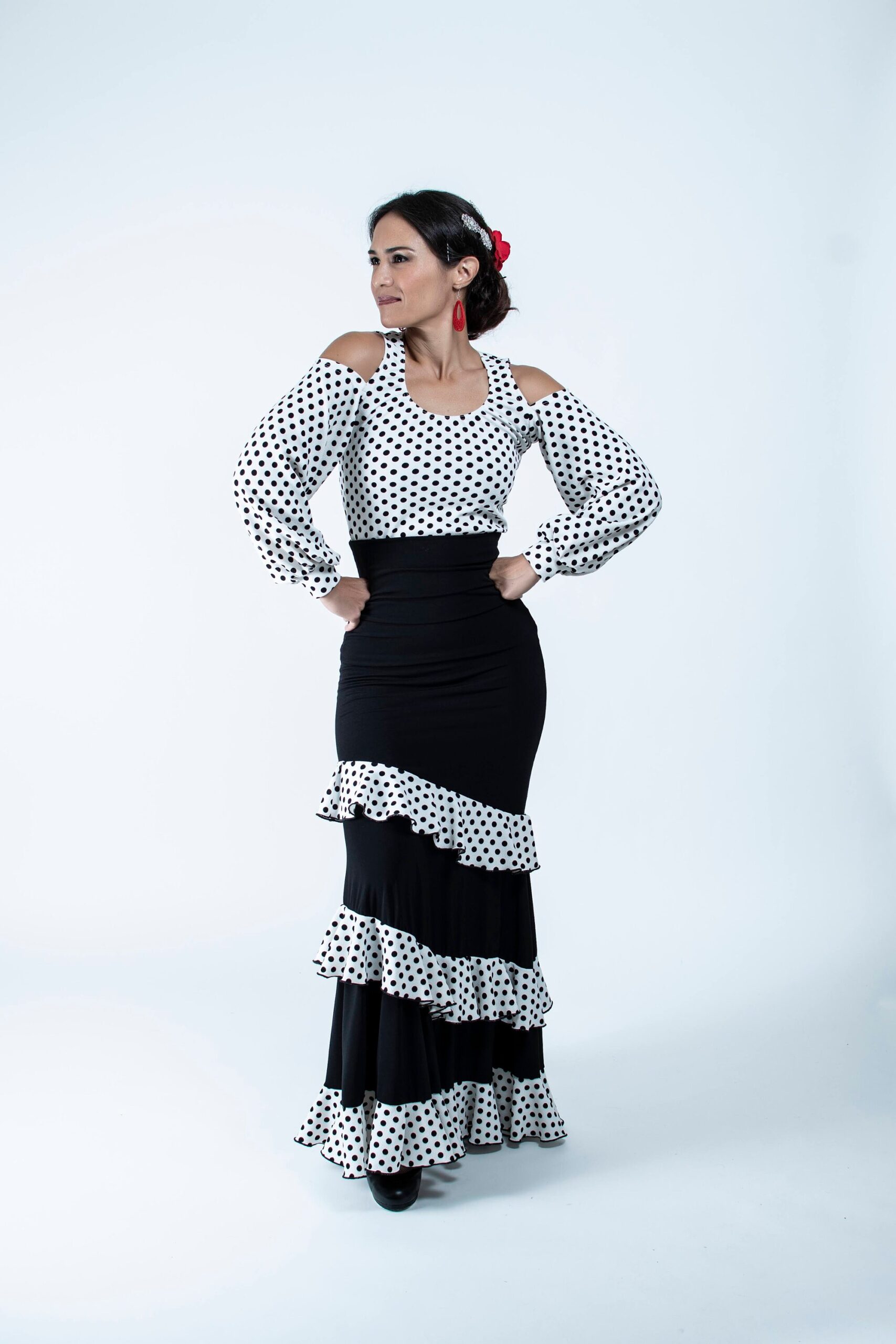 This listing is for a Beautiful flamenco skirt , made with a very soft and comfortable stretch fabric all in Black. very flattering , Mermaid (hip hugging) style ,available in size Small/Medium , ideal for your classes or recitals , fold over waistband will make it adaptable to your height (no zipper) also this stretch fabric makes the skirt adaptable to different sizes and body shapes .