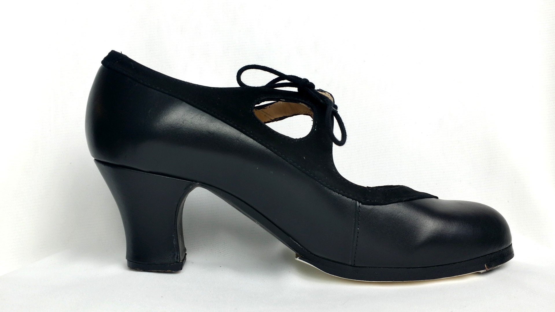 This listing is for one pair of Beautiful Brand New Professionals Flamenco shoes hand made in Spain ,Begoña Cervera model Candor , Black leather and Suede , made with double reinforced sole for better quality and sound, 6cm carrete wooden heel,regular width , sewn sole ,nails,toe box made harder, very comfortable and stylish . Please check measurements chart on the picture to see your size .