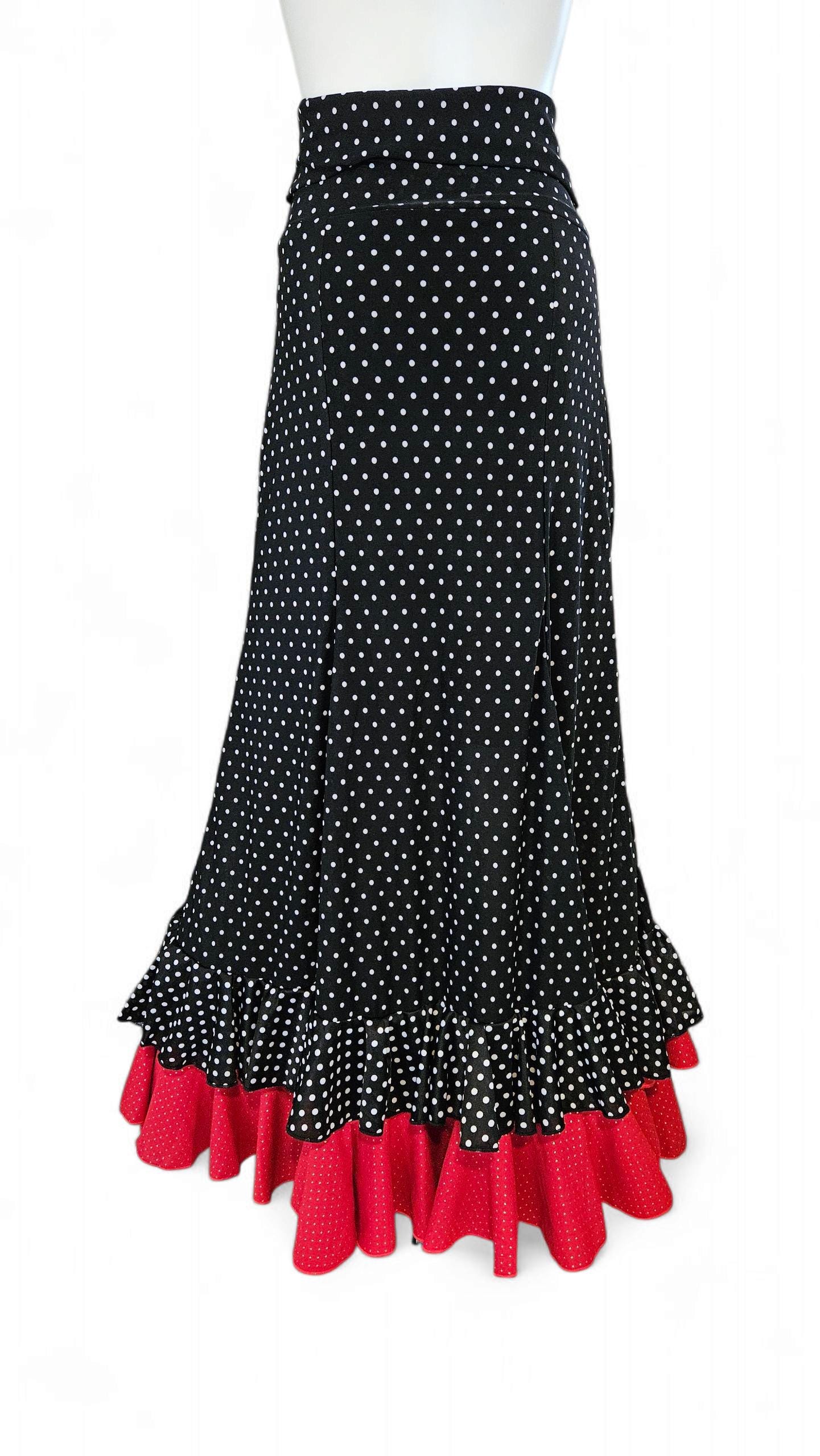 Flamenco Skirt falda de flamenco rehearsal class black polka dots and red